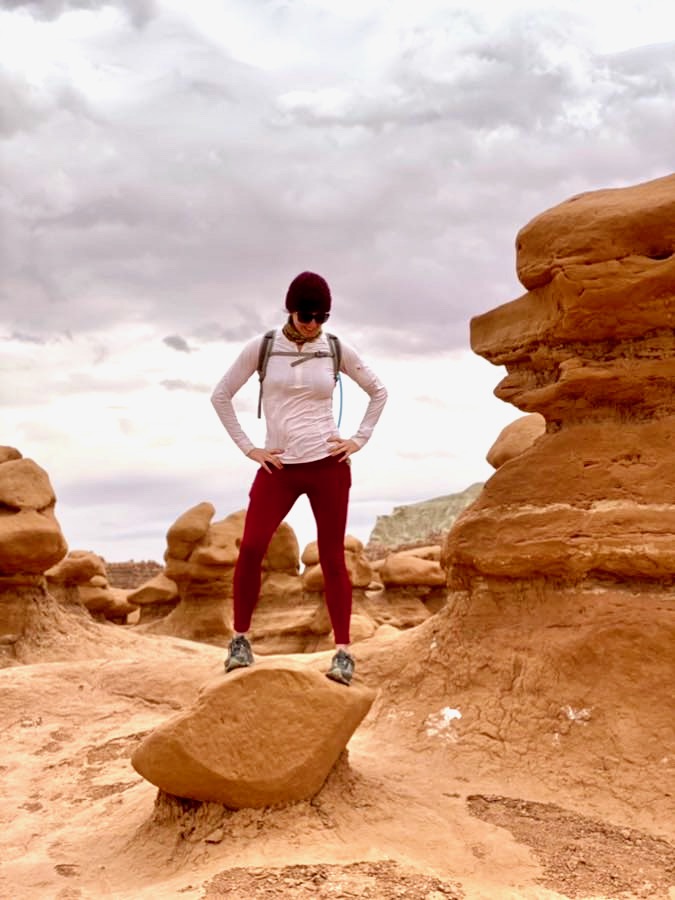 Want to feel as if you’ve arrived on another planet? Then Goblin Valley might be just the place for you! What makes Goblin Valley so unique is that it has thousands of rock spires, called hoodoos. These hoodoos are similar to the ones you would see in Bryce Canyon in Utah, only quite a bit shorter, making them known more locally as “goblins”. We spent about an hour here walking amongst the many hoodoos and taking photos. We likely would have stayed longer if it weren’t for the strong winds that day. Luckily we both had neckwear from Buff that allowed us to cover our faces and protect our mouths and eyes from the sand that was coming at us from all directions. This also made for some interesting photos!
