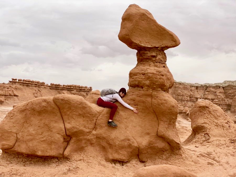 This unexpected location was along our drive between Capitol Reef National park and Goblin Valley, on the West side of the highway. It’s barely marked, but I noticed a large parking area and a handful of other cars in what looked like an apocalyptic waste land. If you happen to come across it, it’s worth stopping at if you enjoy photography! There is not much here in the way of trails and it was again very windy in the area, which only added to the mysteriousness of the place. However there were some cars and ATVs exploring further into the hills. We had fun taking pictures of ourselves and the cars.