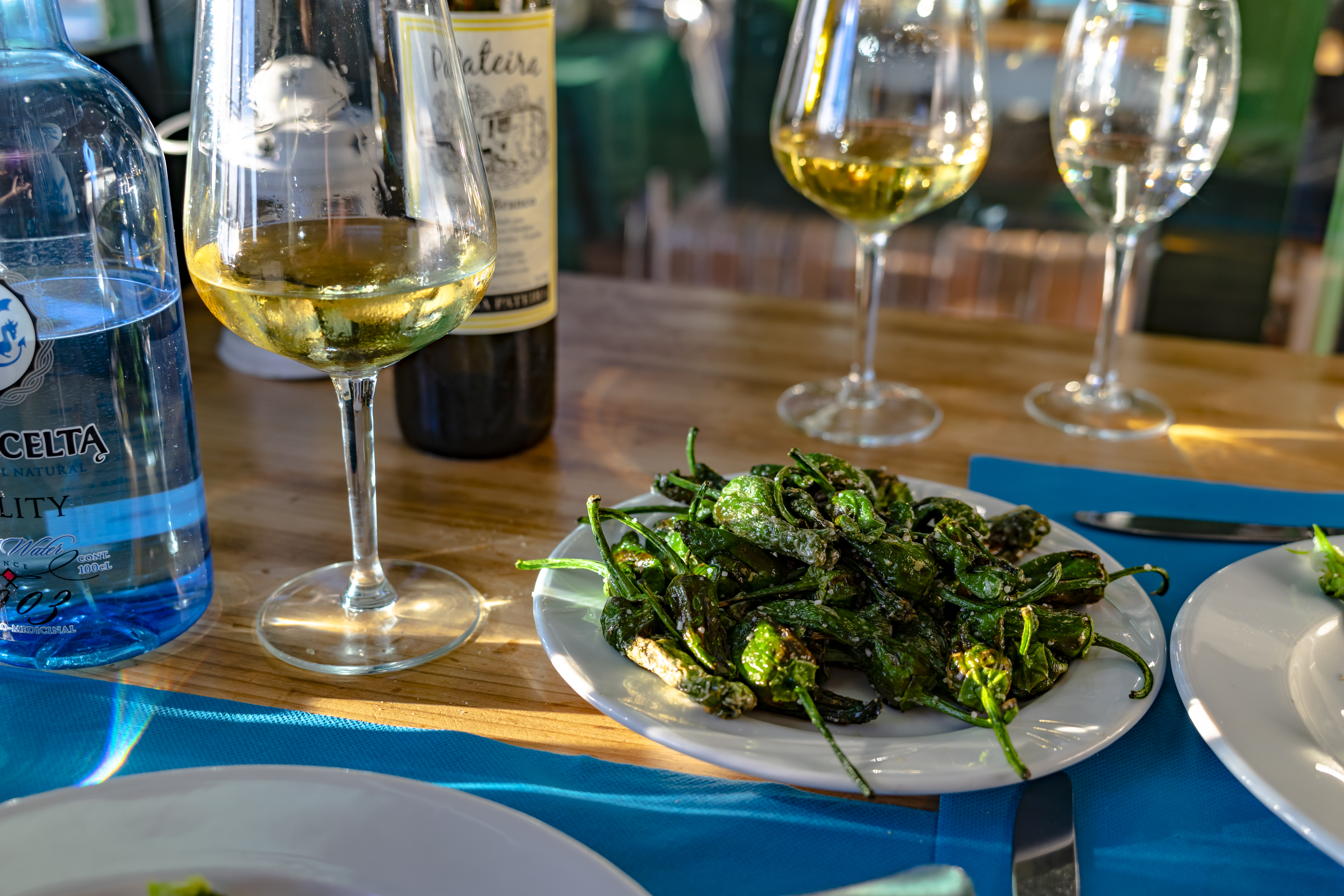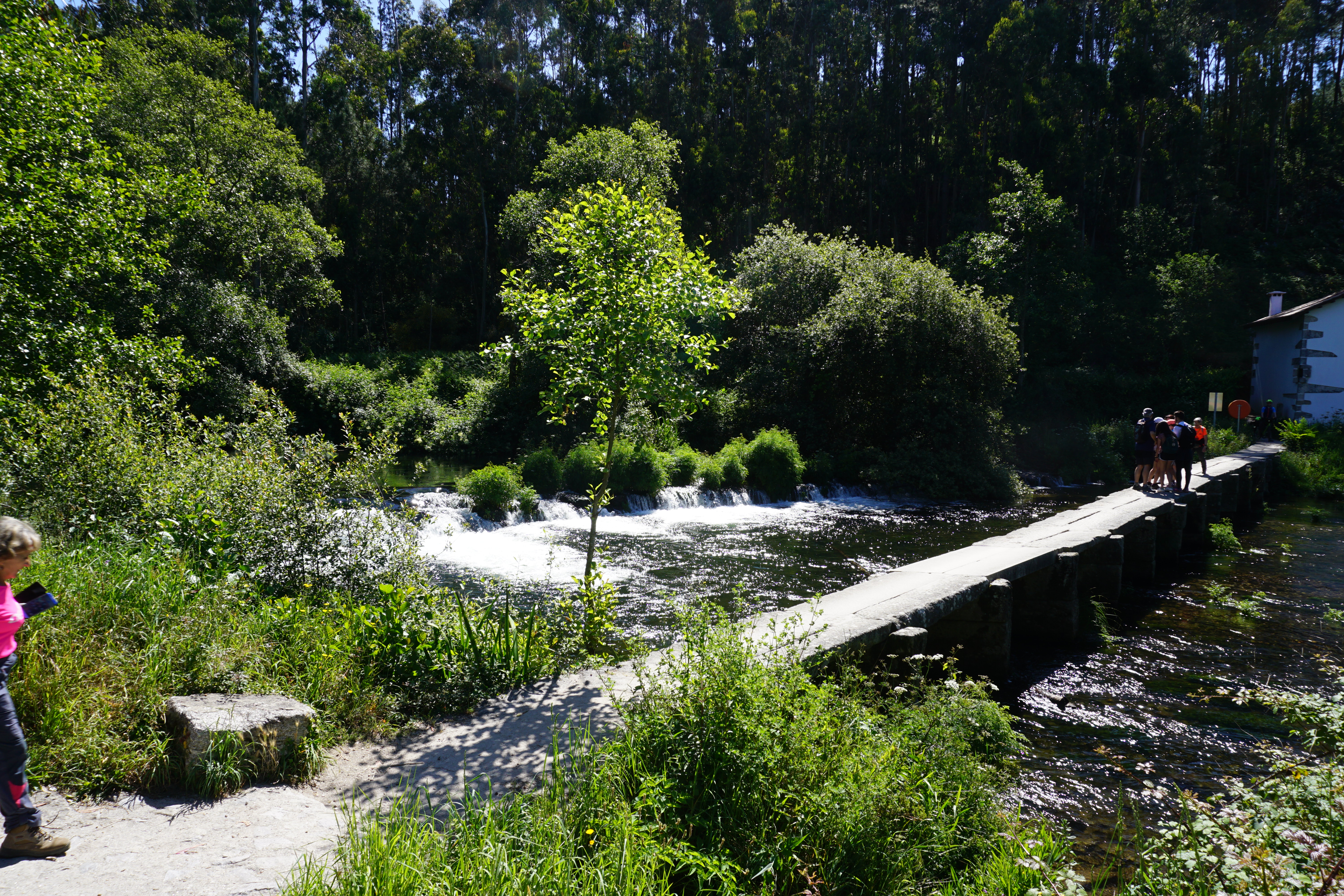 Day 4: Vigo to Caldas de Reis Day 4 started off with a bit of climbing again, but mellowed out as we passed through many vineyards. The narrow paths surrounded by grape vines were a welcome change of scene. We enjoyed waffles covered with soft serve ice cream during one of our rest breaks. Finally, we finished the day with dinner in Caldas de Reis and ended up seeing many other pilgrims here. This was likely because Vigo is the starting point for pilgrims wanting to complete the last 100 km of the Camino by foot along the Portuguese Route.