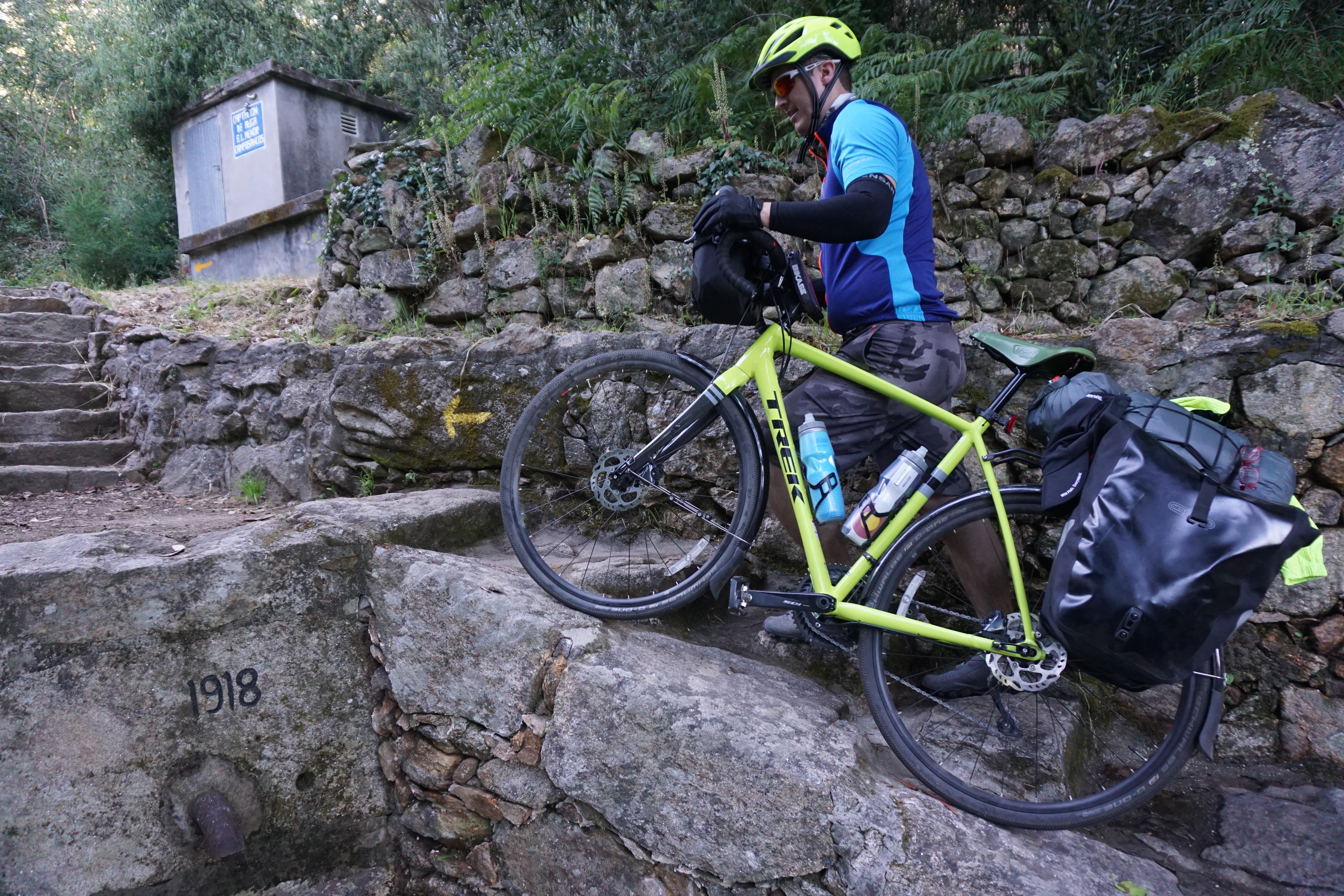 - Trek Checkpoint – this is a ‘gravel’ bike with disc brakes, no suspension and slightly larger tires than a road bike. Most other cyclists were on hard-tail mountain/hybrid bikes. The front suspension would have been nice for some of the dirt paths and the cobblestone streets, but the Trek Checkpoint worked well for about 90% of the Camino and I was happy with it.