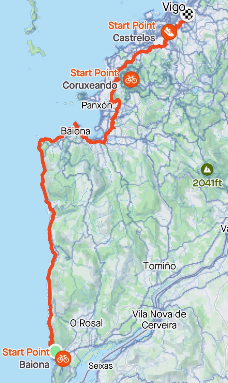 - Day 3: A Guarda to Vigo – 39 mi (63 km), 3,240 feet (988 m) elevation gain