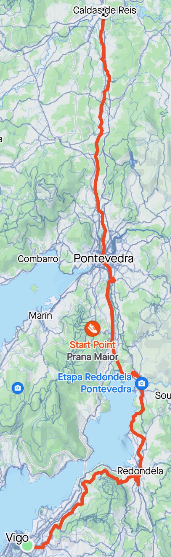 - Day 4: Vigo to Caldas de Reis – 39 mi (63 km), 2,708 feet ( 825 m) elevation gain