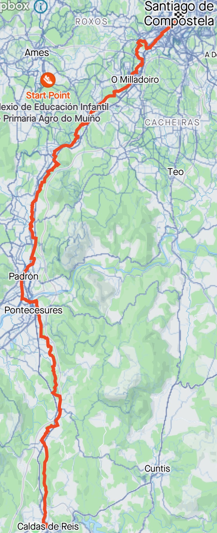 Scroll through the maps above which capture the route we took from Porto, Portugal to Santiago de Compostela, Spain.