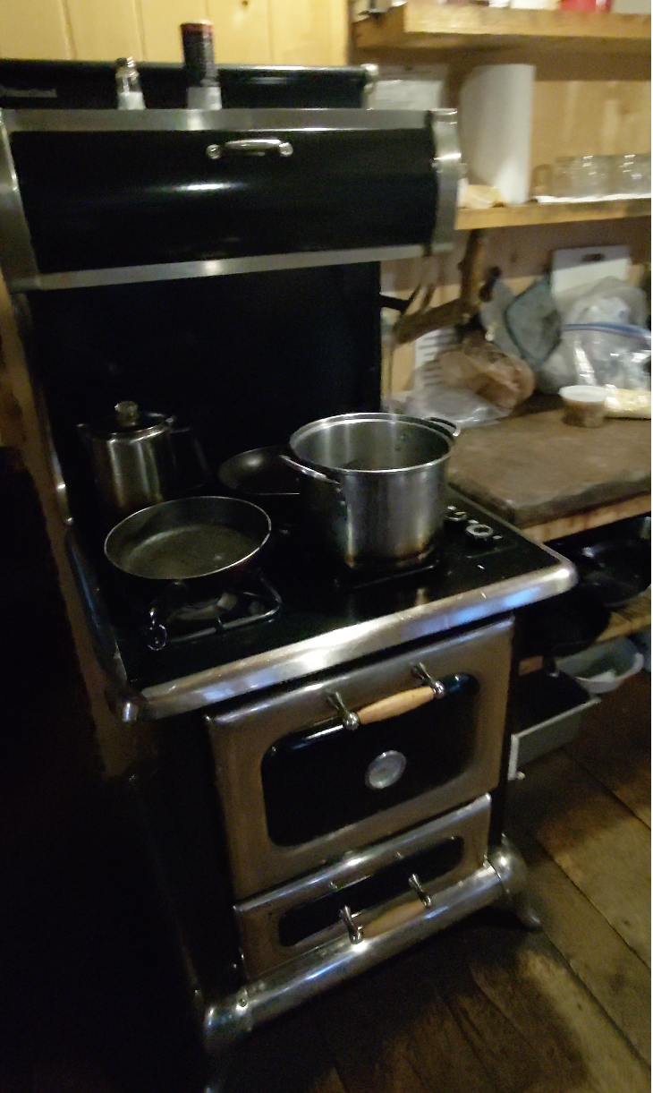 Each hut is a little different but in general has a wood-burning stove, firewood, matches, propane burners, photovoltaic lighting, cooking equipment, tables, beds and pillows. Most huts have an outhouse equipped with toilet paper. My favorite outhouse of all time is the one nearby the neighboring Benedict Huts, shown in the picture below. Two sides of this outhouse are made of floor-to-ceiling windows and make for an unforgettable toileting experience!