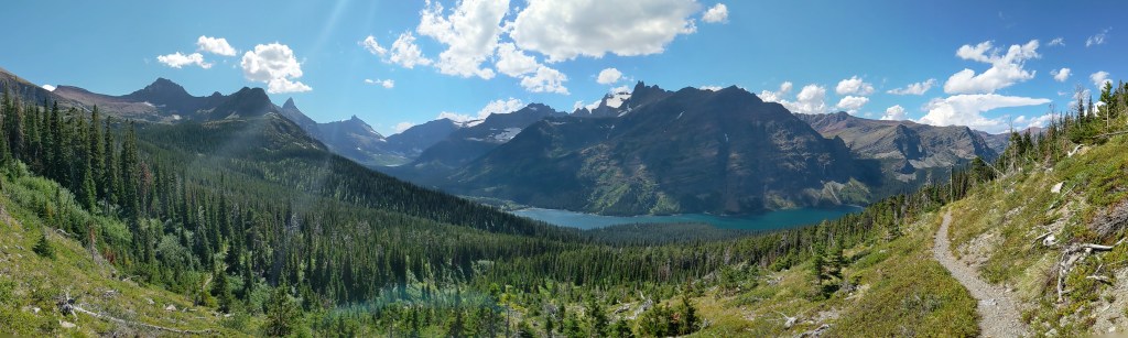 The trails below tree-line can be quite dense with foliage. This was a little nerve-wracking to hike through given the bears that call Glacier National Park their home. On our first day of hiking, we saw at least one pile of bear scat directly on the trail per mile, so we thought we would most certainly see a bear during our five days. Alas, we did not and we were all disappointed. We may have done too good a job with alerting bears to our presence as we hiked.